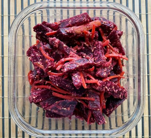 食欲が落ちると食事を考えるのが面倒になり、マンネリが続いて食べるのも億劫になる。そんな時ほど、定番より目新しいものが欲しい。そして少しづつ色んなものを食べたい。 そんな時に思いついたビーツの胡麻味噌和え、久々の大ヒットとなった。 胡麻味噌ダ…