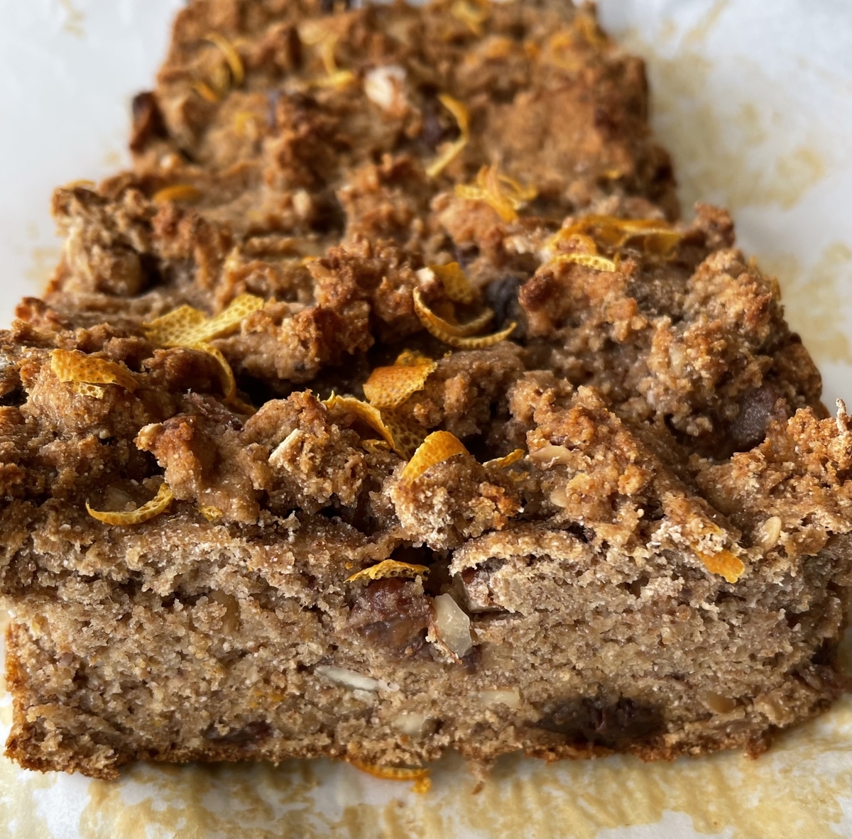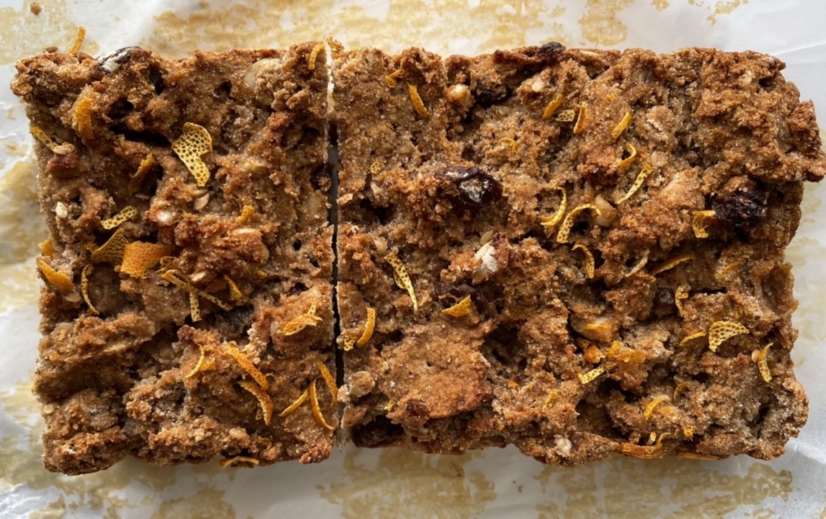 マハレブとオレンジピールとアーモンドの組み合わせで風味を作り、ココナツ粉のふんわりした甘みとレーズンの甘酸っぱさを足して、甘味料無しでも十分に甘かった。