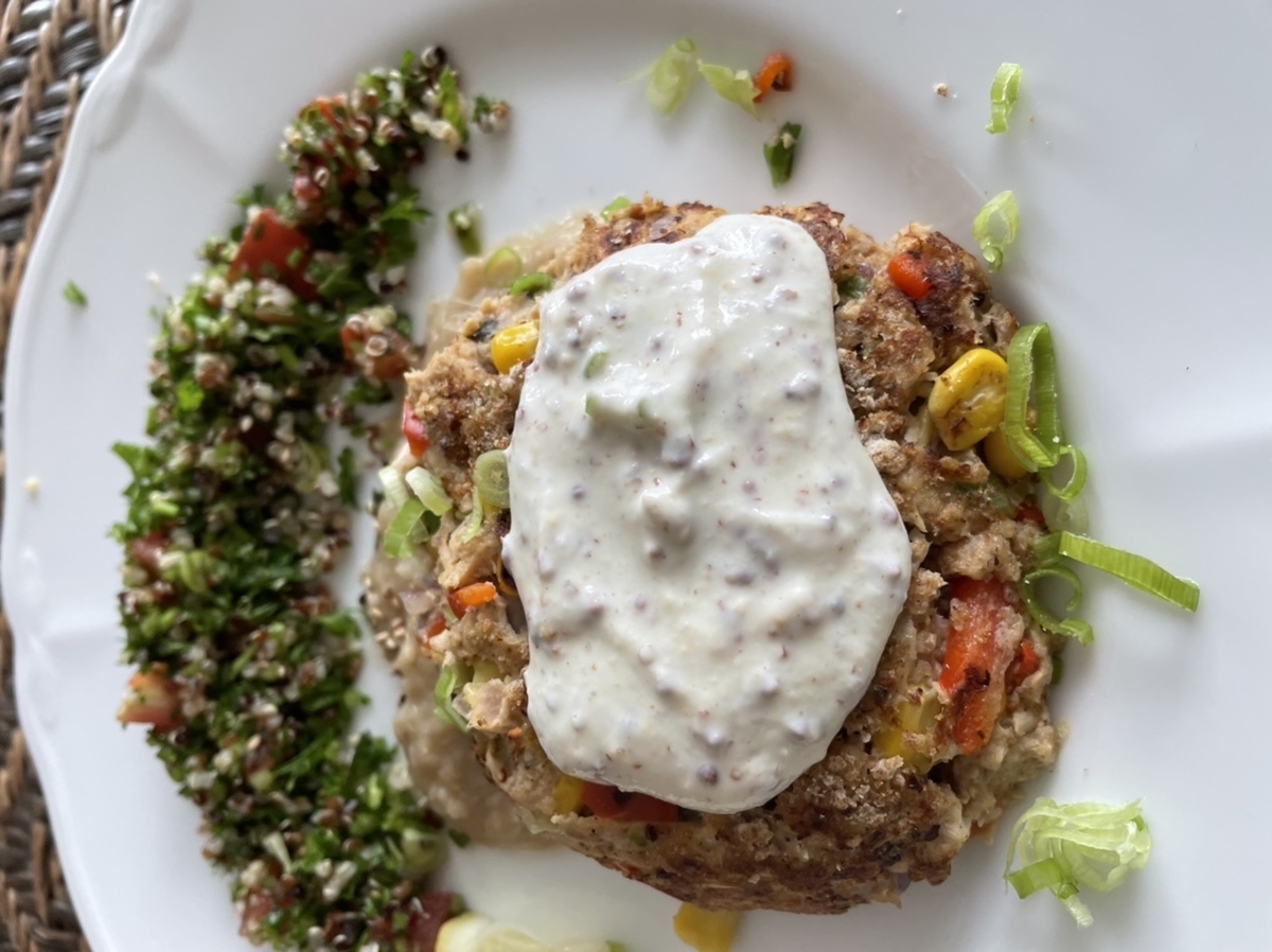 一緒に盛ったのはキヌアタブーリ。付け合わせとして、良かった。